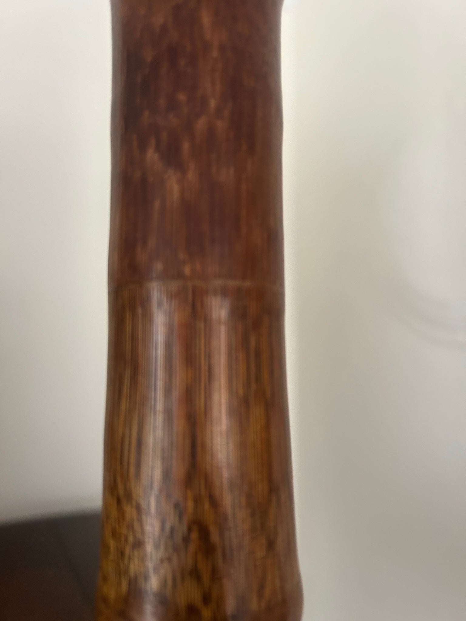 These handsome candlesticks measure 12" tall and can be used one at a time, as a pair and in groups of three or five. They look great on a mantel as well as a dining room or entrance way table. The bamboo is a warm chestnut brown and there is never a need to polish the nickel!