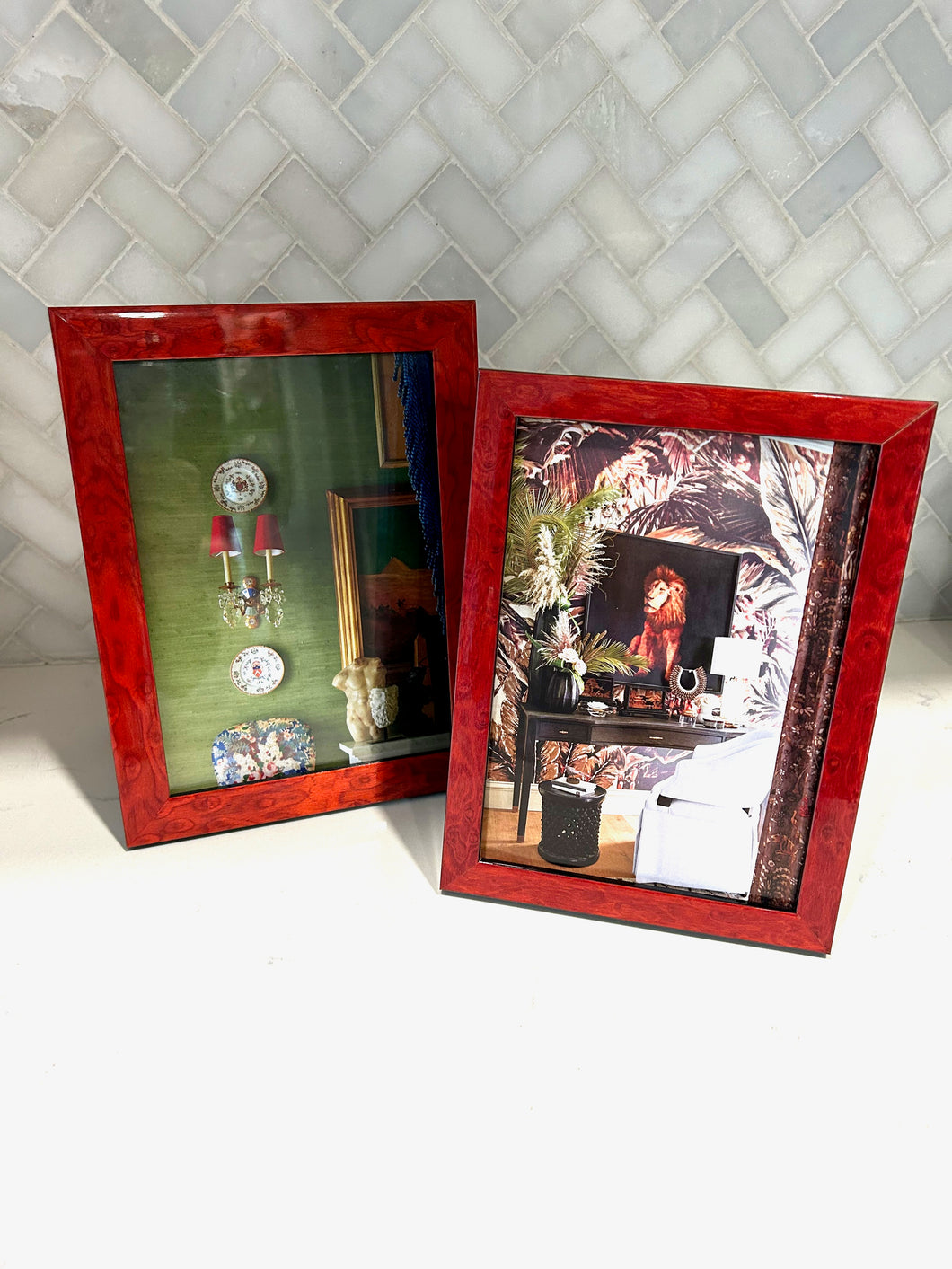 Handmade in the USA of Italian wood, these 5x7 red burl frames are so handsome!